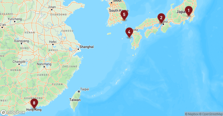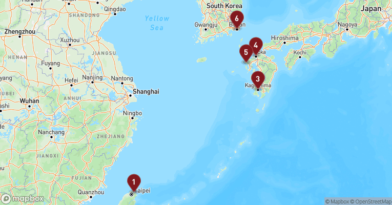 Mørkegrønne bjergskråninger omfavner havnen i Keelung, hvor skyskrabere, templer og fiskehaller spejler sig i det skiftende lys over havet. Ved havnefronten blander duften af saltvand og frisk fisk sig med røgelse fra det smukke Dianji-tempel, hvis røde søjler og gulddetaljer danner en fredfyldt kontrast til det livlige bybillede. En udflugt til det særprægede Yehliu Geopark vest for byen fører dig til et landskab, hvor vind og hav har skabt klippeformationer, der ligner skulpturer – heriblandt den berømte "Queen’s Head". Ikke langt fra Keelung ligger Taipei, som nås på under en time med tog og åbner døren til Taiwans moderne puls og kulturelle dybde. Her kan du besøge det storslåede National Palace Museum, der rummer en af verdens fineste samlinger af kinesisk kunst, eller tage elevatoren op i Taipei 101 og skue ud over storbyen fra det ikoniske tårns 89. etage. Chiang Kai-shek Memorial Hall og Longshan-templet vidner om øens dramatiske historie og spirituelle rødder, mens grønne oaser som Elephant Mountain og Da’an Park inviterer til ro og udsigt. Keelung fungerer som et stemningsfuldt udgangspunkt, hvorfra både kystens naturkræfter og hovedstadens kulturskatte kan opleves.