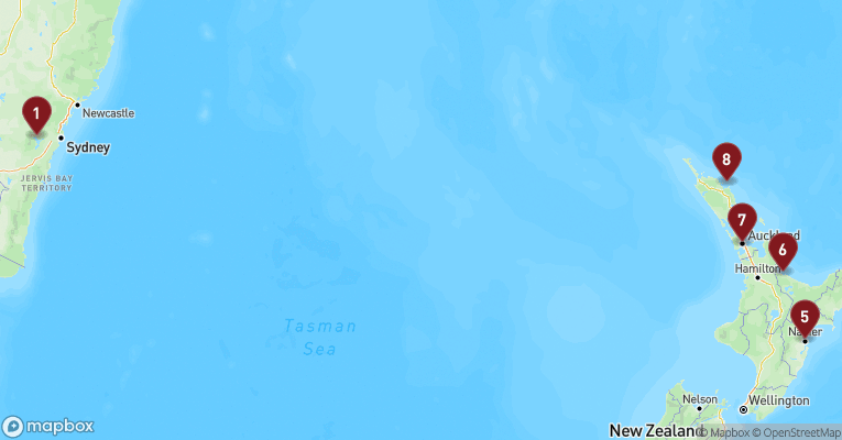 I Sydney mødes storbyliv og natur med en lethed, der er helt særlig for Australien. Langs havnefronten strækker byens ikoniske vartegn sig mod himlen – Operahusets hvide sejl og Harbour Bridge i stålgråt spænd – mens færger glider ind og ud mellem bugtens grønklædte vige og småøer. Du kan slentre gennem The Rocks’ brostensbelagte gader med kolonihistorie og kunsthåndværk i hvert hjørne eller tage en kort tur ud til Bondi Beach, hvor surfere danser i brændingen, og klippestier lokker med udsigt over det turkisblå hav. En sejltur på havnen afslører Sydneys dramatiske kystlinje fra vandsiden, og med lidt held får du øje på legesyge delfiner eller majestætiske pukkelhvaler på vej nordpå. I den botaniske have breder eukalyptustræerne deres sødlige duft, og kakaduer skriger i kronerne, mens du skuer ud over vandet. Ikke langt herfra folder Blue Mountains sig ud med blå dis, klippeformationer og vandfald i flere niveauer – oplagt for en dagstur væk fra byens summen. Sydney rummer både elegance og vildskab, og det er netop kontrasten mellem opera og ocean, storby og strand, der gør byen så uforglemmelig.
