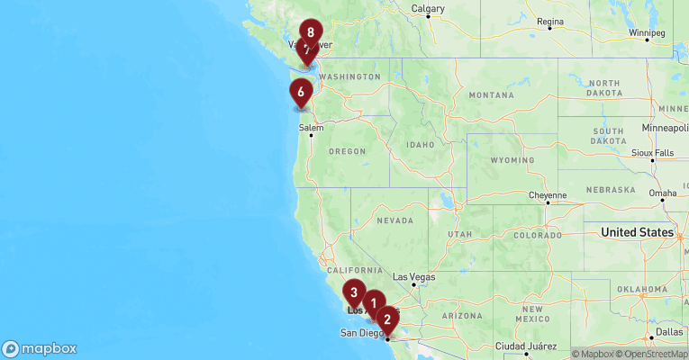 San Diego byder på solskin året rundt, afslappet stemning og en bred vifte af oplevelser, hvor både strandliv, kultur og historie går op i en højere enhed. Langs den snoede kystlinje ligger brede sandstrande som Mission Beach og La Jolla, hvor pelikaner glider hen over bølgerne, og søløver dovner i solen på klippefremspringene. Inde i byen kan du udforske det frodige Balboa Park, der er en af USA’s største byparker og rummer museer, haver og det berømte San Diego Zoo, hvor pandaer og palmetræer deler plads med arkitektoniske perler i spansk kolonistil. Ved havnefronten ligger det imponerende hangarskib USS Midway forankret som museum med indblik i livet ombord og USA’s søfartshistorie. I det gamle kvarter Gaslamp District mødes historiske bygninger og moderne restauranter i en livlig blanding af fortid og nutid, mens det tidligere spanske missionsområde ved Old Town fortæller om byens tidligste bosættelser og mexicanske rødder. En tur til grænsebyen Tijuana er mulig på en dag, men også en udflugt til Coronado Island med sin ikoniske træbadebro og klassiske strandhotel er oplagt. San Diego forener californisk livsglæde med kulturarv og kystlandskaber – og det hele sker i et tempo, hvor der er tid til at trække vejret og nyde det.