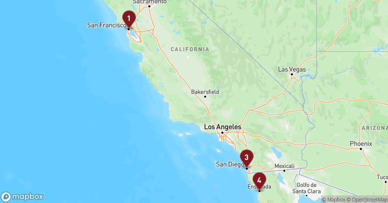 San Francisco er en by, der både føles ikonisk og uventet - med stejle gader, sporvogne, victorianske træhuse og udsigter, der tager pusten fra dig. Golden Gate Bridge spænder sig i rødt over den tågedækkede bugt, og fra udsigtspunkter som Twin Peaks eller Coit Tower kan du skue ud over byen, Alcatraz og det glitrende Stillehav. Et besøg på Alcatraz bringer dig tæt på den barske historie om fængslets isolerede eksistens og dets mest berygtede fanger - en oplevelse, der kombinerer stemning med skarpt historisk blik. I bydelen Mission møder du farvestrålende gavlmalerier og latinamerikansk kultur, mens Chinatown byder på en helt særlig stemning med templer, tebutikker og travle gademarkeder. Mod vest ruller bølgerne ind mod Ocean Beach, og i Golden Gate Park kan du nyde japanske haver, bisoner og fredelige stier mellem eukalyptustræer og søer. Fisherman’s Wharf og Pier 39 er mere livlige og turistprægede, og herfra kan du tage på bådtur i bugten eller nyde synet af søløver, der slikker sol på flydebroerne. San Francisco er en by fuld af udsigter og aftryk - fra hippiebevægelsens rødder i Haight-Ashbury til moderne teknologi i Silicon Valley, lige syd for byen - og uanset hvor du vender dig hen, er der altid noget med kant, sjæl og historie.