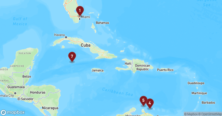 Pastelfarvede huse, små butikker og svajende palmer byder dig velkommen til Georgetown - hjertet af Caymanøerne. Byens gader er præget af en afslappet ø-stemning, men under overfladen gemmer sig et mylder af oplevelser. Du kan dykke ned i den klare, turkisblå bugt, hvor koralrev og farverige fisk svømmer tæt på kysten, eller tage på bådtur til Stingray City, hvor store, blide rokker glider elegant gennem det lave vand. Historien træder frem på Cayman Islands National Museum, hvor du kan lære om øernes maritime fortid, pirater og kolonitid. Lidt uden for byen strækker den berømte Seven Mile Beach sig med sin brede, gyldne sandstrand og rolige bølger - perfekt til en gåtur eller en afslappende stund under en palme. Georgetown forener solbeskinnet ø-idyl med et glimt af øernes kulturarv, alt sammen indrammet af Caribiens klare lys og lune atmosfære.