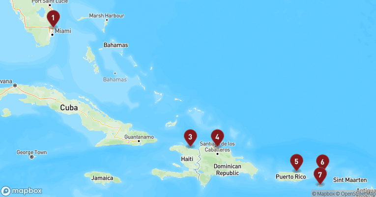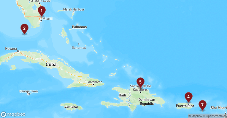 Pastelfarvede huse, små butikker og svajende palmer byder dig velkommen til Georgetown - hjertet af Caymanøerne. Byens gader er præget af en afslappet ø-stemning, men under overfladen gemmer sig et mylder af oplevelser. Du kan dykke ned i den klare, turkisblå bugt, hvor koralrev og farverige fisk svømmer tæt på kysten, eller tage på bådtur til Stingray City, hvor store, blide rokker glider elegant gennem det lave vand. Historien træder frem på Cayman Islands National Museum, hvor du kan lære om øernes maritime fortid, pirater og kolonitid. Lidt uden for byen strækker den berømte Seven Mile Beach sig med sin brede, gyldne sandstrand og rolige bølger - perfekt til en gåtur eller en afslappende stund under en palme. Georgetown forener solbeskinnet ø-idyl med et glimt af øernes kulturarv, alt sammen indrammet af Caribiens klare lys og lune atmosfære.