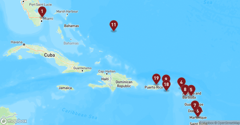 Castries er hovedstaden på St. Lucia og en farverig blanding af caribisk livsglæde, kolonihistorie og tropisk natur. Gaderne dufter af krydderier, frugt og hav, og de små markedsboder bugner af håndlavet kunsthåndværk og modne mangoer. Byens placering i en bugt med grønne bjerge i baggrunden gør den til et smukt udgangspunkt for udflugter ind i øens frodige indre. En dag her kan tage dig til det berømte udsigtspunkt Morne Fortune, hvor du får panorama over byen og havnen, og videre sydpå til Soufrière-regionen med dens boblende svovlkilder og St. Lucias stolte vartegn – de to grønklædte tvillingebjerge Pitons, der rejser sig dramatisk op af det azurblå hav. Du kan bade i varme mineralbade, besøge en kakaoplantage eller sejle langs vestkysten, hvor fiskerlandsbyer, palmefyldte strande og koralrev afløser hinanden. Øens vulkanske oprindelse mærkes overalt – i jorden, i landskabet og i de sorte sandstrande. Og midt i det hele venter den varme, rytmiske puls fra en befolkning, der møder dig med smil, stolthed og et "Welcome to paradise", der føles helt ægte.