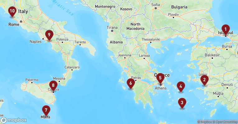 Langs den mexicanske kyst ligger Costa Maya, hvor turkisblåt hav møder hvide strande og en rolig, tropisk stemning. Lidt inde i landet gemmer junglen på gamle hemmeligheder: Ved Chacchoben og Kohunlich rejser mayaernes templer og steler sig mellem grønne trækroner, og guider fortæller historier om en tid, hvor dette var blomstrende bystater. Tilbage ved kysten byder Mahahual på et mere nutidigt liv - en lille fiskerby med en afslappet strandpromenade, farverige huse og små boder, hvor håndværkere sælger smykker, tekstiler og souvenirs. Langs strandens små restauranter serveres friskfanget fisk og ceviche med udsigt til havet, mens dykkerbåde lægger fra land for at udforske det store koralrev lige ud for kysten. Her svømmer farverige fisk mellem korallerne, og solen spiller i vandoverfladen. Costa Maya er et møde mellem fortidens storslåede kulturarv og nutidens rolige caribiske charme - en dag, der kan være lige så eventyrlig som afslappet.