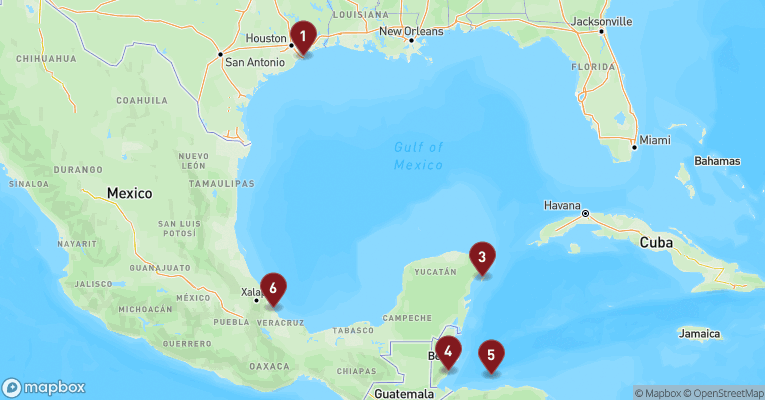 Cozumel byder på klart, turkisblåt vand, palmeskyggede strande og et af verdens mest berømte koralrev. Øen er et paradis for snorkling og dykning, hvor farvestrålende fisk, havskildpadder og imponerende koralformationer venter lige under overfladen. Inde på land finder du et mere roligt tempo med små byer, hvor hvidkalkede huse, farverige butikker og hyggelige torve danner en charmerende ramme. I San Miguel, øens livlige hovedby, kan du gå på opdagelse blandt håndlavede smykker, lokale kunstværker og caféer, hvor friskpresset lime og lokalt køkken går hånd i hånd. Vil du opleve øens historie, kan du besøge de mayanske ruiner ved San Gervasio, der engang var et vigtigt religiøst centrum tilegnet gudinden Ixchel. Langs østkysten venter vilde, åbne strande og klippeformationer, hvor bølgerne slår dramatisk ind. Cozumel er et møde mellem en eventyrlig undervandsverden, tropisk natur og en gæstfri kulturarv, der mærkes både på land og til vands.