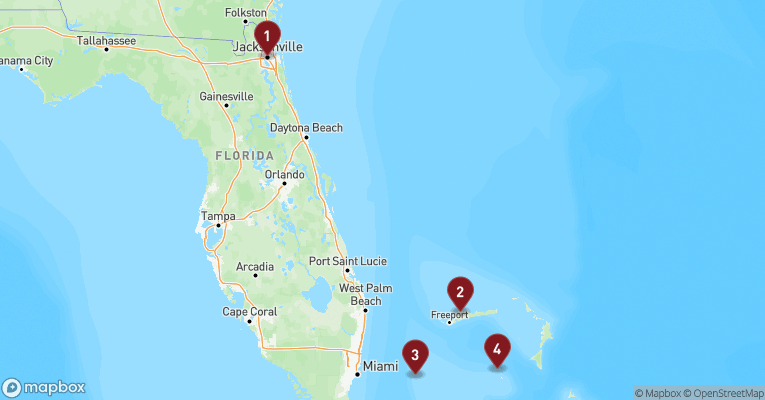 Freeport på Grand Bahama er en moderne havneby omgivet af hvide strande, turkise laguner og frodig natur. I Port Lucaya Marketplace møder du øens livlige centrum med farverige boder, butikker og restauranter, hvor der ofte spilles live-musik i det fri, og atmosfæren er lige så afslappet som tropisk. Fra bymidten er der kort vej til strandene, hvoraf Taino Beach og Lucaya Beach er blandt de mest populære med blødt sand, palmer og vandsportsaktiviteter som kajak og snorkling. Freeport er også porten til Lucayan National Park, hvor du kan opleve mangroveskov og et af verdens længste undersøiske hulesystemer opå en tur, der slutter på Gold Rock Beach, der ved lavvande breder sig ud som et uendeligt tæppe af hvidt sand. Dykkere og snorklere finder farverige rev lige uden for kysten, mens Dolphin Experience giver mulighed for at komme tæt på øens mest ikoniske dyr. Freeport forener strandliv og natur med et strejf af moderne caribisk byliv, og kontrasten mellem markedsplads, regnskov og hav gør opholdet mangfoldigt.