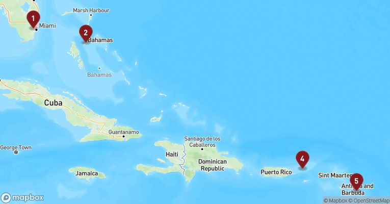 Farvestrålende huse i pastelfarver lyser op mellem palmer og lyseblå bølger, og i byens hjerte summer det af musik, markedsstemning og historiske vingesus. Nassau, hovedstaden på Bahamas, kombinerer kolonitidens charme med caribisk livsglæde. Du kan gå en tur ad Bay Street med dens gamle bygninger, små butikker og Straw Market, hvor lokale kunsthåndværkere sælger kurve, hatte og souvenirs. Besøg Fort Fincastle og klatr op ad Queen’s Staircase - 66 trin hugget direkte ind i klippen - for en fantastisk udsigt over byen og havet. Øen har også sine skygger: Pirates of Nassau-museet fortæller levende om den tid, hvor pirater huserede i området, og britiske styrker forsøgte at holde lov og orden. Vil du ud i naturen, er der kun en kort bådtur til det turkise vand ved Pearl Island eller til snorkling blandt farvestrålende fisk og gamle skibsvrag ved Paradise Island. Nassau byder på lethed og historie, koralrev og kolonitid - alt sammen i gåafstand fra hinanden.