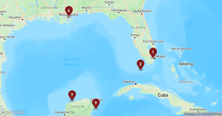 Miami forbindes ofte med strandfester, pastelfarvede art deco-hoteller og musikken fra Ocean Drive, hvor lyden af latinrytmer og motorbrøl smelter sammen i en cocktail af energi og attitude. Og det billede passer – i hvert fald delvist. For bag det glamourøse ydre gemmer sig en by med mange lag, hvor forskellige kulturer, især den cubanske, har sat dybe spor i alt fra maden til sproget. I det livlige Little Havana dufter der af cigarer og frisklavet cafecito, mens Calle Ocho byder på farverige vægmalerier og spontane domino-turneringer i parken. Langs Biscayne Bay glitrer skyskraberne, og i det trendy Wynwood-kvarter er væggene dækket af street art i verdensklasse. Miami er også porten til det vilde Florida: Du kan tage på airboat-safari blandt alligatorer i Everglades, eller krydse broerne til Florida Keys, hvor vejen nærmest svæver over det turkise hav. Og selv midt i storbyen er der lommer af ro, som i Fairchild Tropical Botanic Garden eller blandt flamingoerne i Zoo Miami. Med sin eksotiske blanding af storby, strand og subtropisk natur er Miami en oplevelse med mange facetter.
