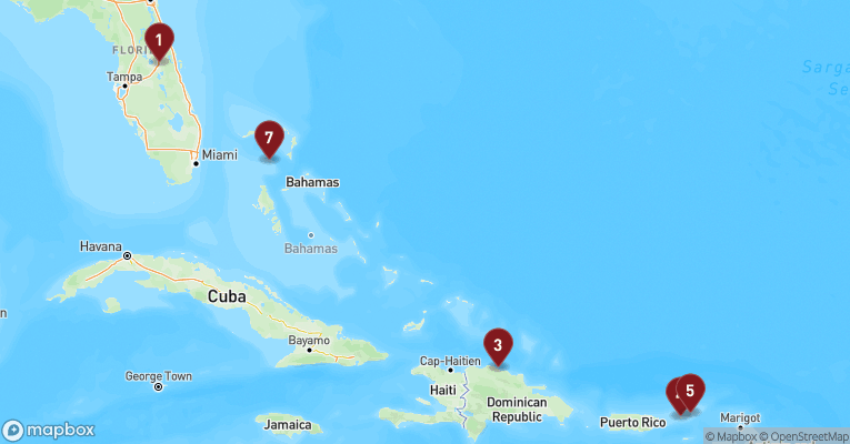På Great Stirrup Cay bliver du sat i land på en ø, hvor alt kredser om havet. Stranden bugter sig med hvidt sand og vand i nuancer af turkis, men der er mere at lave end blot at læne sig tilbage i en liggestol. Du kan snorkle blandt fisk, der svømmer i flok mellem korallerne, glide lydløst over vandet i kajak eller prøve parasailing og se hele øen fra fugleperspektiv. Inde på land fører stier dig forbi små laguner og frem til et gammelt fyrtårn, der minder om øens tid som navigationspunkt i det 19. århundrede. Men det er lyden af bølgerne, duften af saltvand og synet af pelikaner, der dykker efter fisk, som for alvor gør indtryk - her mærker du Bahamas i sin enkleste form.
