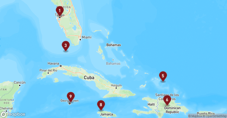Uanset om du vil snorkle med rokker, dykke blandt skibsvrag eller bare slappe af i solen, er Cayman Øerne en uforglemmelig del af enhver krydstogtrute gennem Caribien.