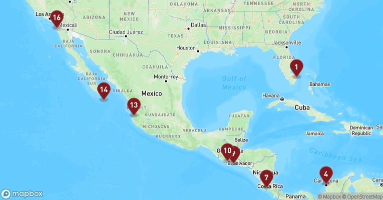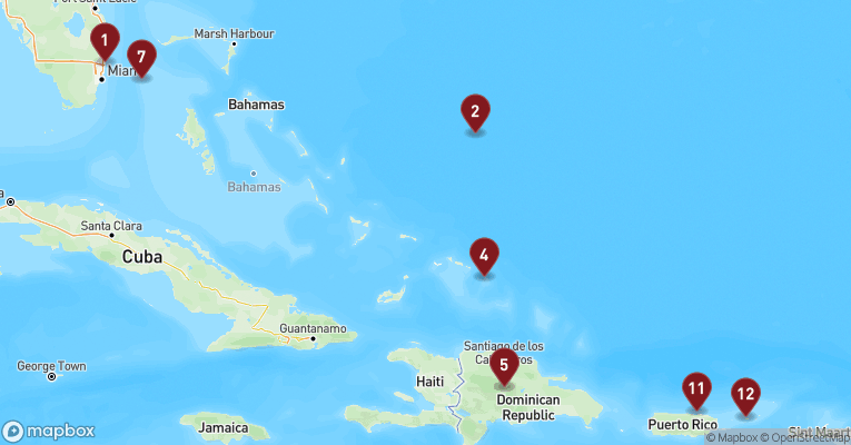 Både MSC og NCL sejler en del rundt ved Bahamas, Puerto Rico, Den Dominikanske Republik, Jamaica, Caymanøerne, Mexico, Belize og Honduras. Men du kan også finde ruter der sejler forbi St. Thomas, Aruba, Curacao, Colombia og Panama.
