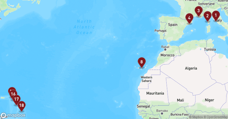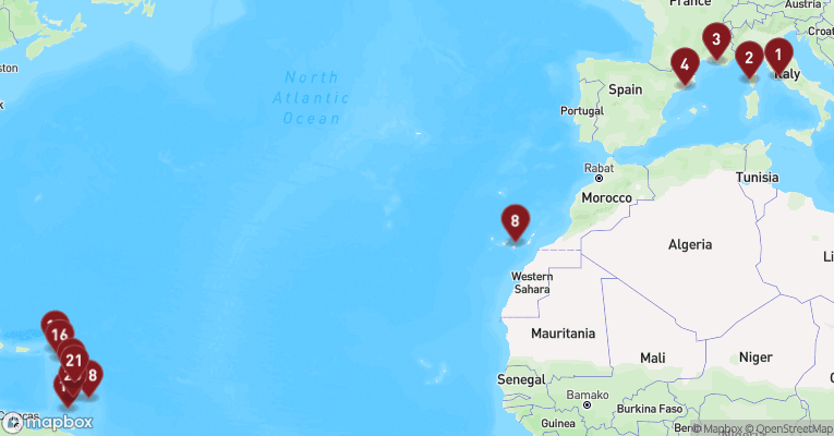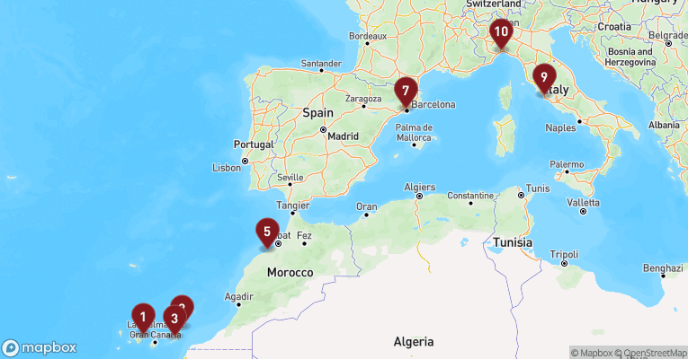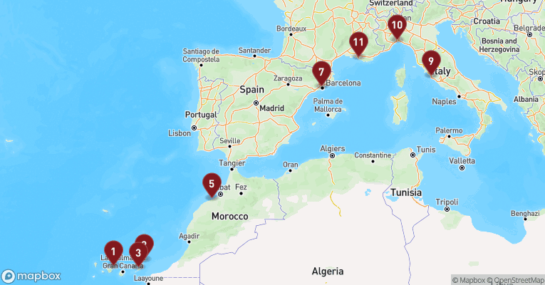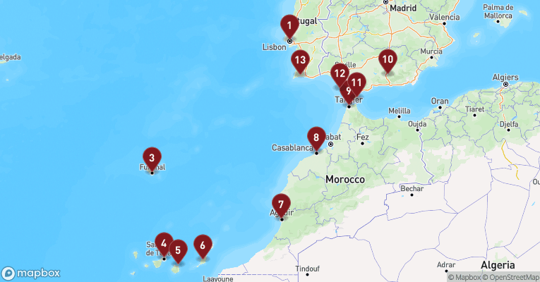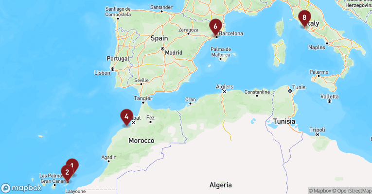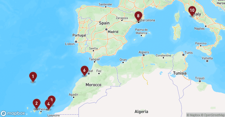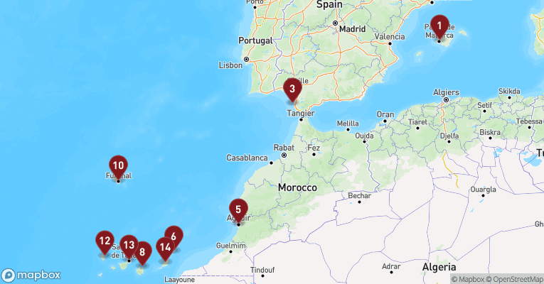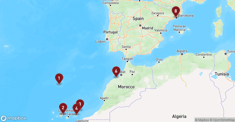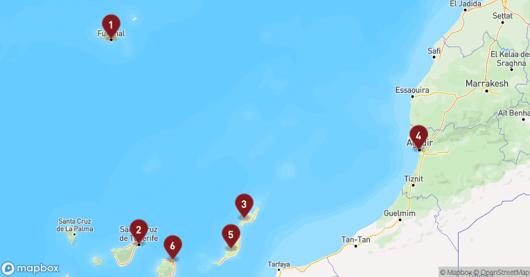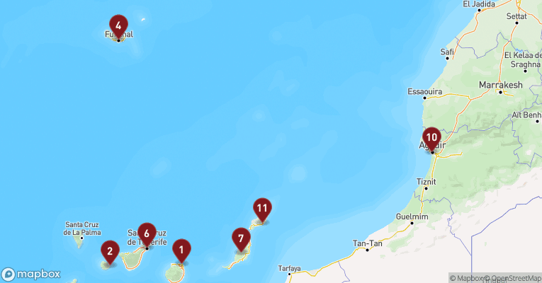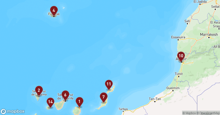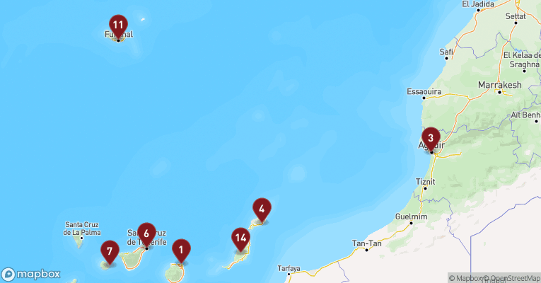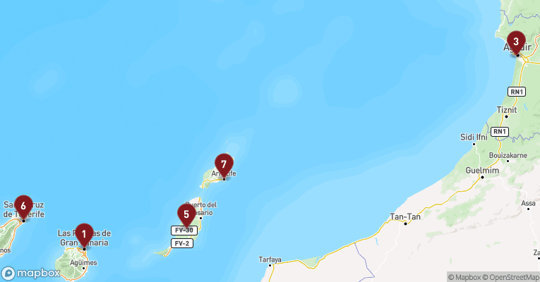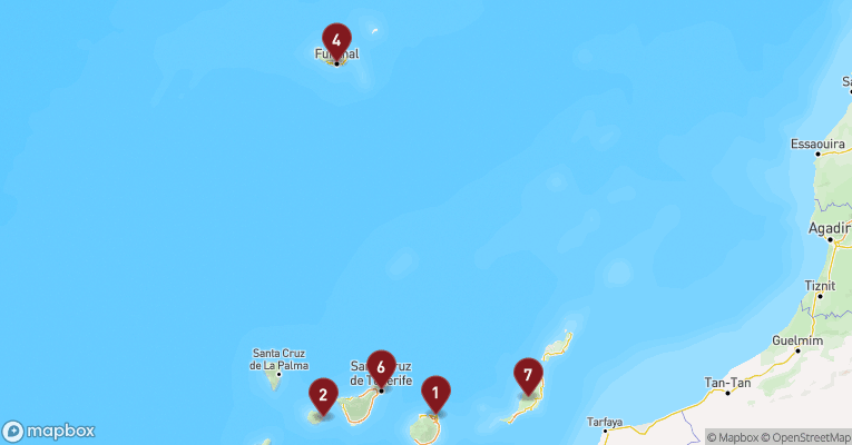 Fuerteventura er en af de mest populære øer i De Kanariske Øer, og den er et ideelt stop på dit krydstogt. Øen er kendt for sine vidunderlige strande og det varme, solrige klima året rundt. Med sine lange kyststrækninger og konstante vinde tiltrækker Fuerteventura vandsportsentusiaster, især windsurfing og kitesurfing, som finder de perfekte forhold til deres sportsgrene.