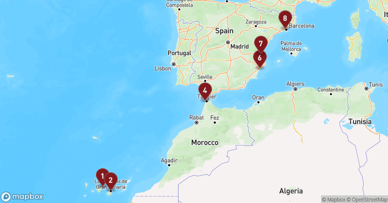 En rejse til Gran Canaria tilbyder også fantastiske shoppingmuligheder, livlige markeder og et væld af restauranter, hvor du kan smage på lokale retter som papas arrugadas og mojo. På dit krydstogt til Gran Canaria kan du tage del i øens fantastiske atmosfære, udforske lokale seværdigheder og nyde de enestående naturskaber.