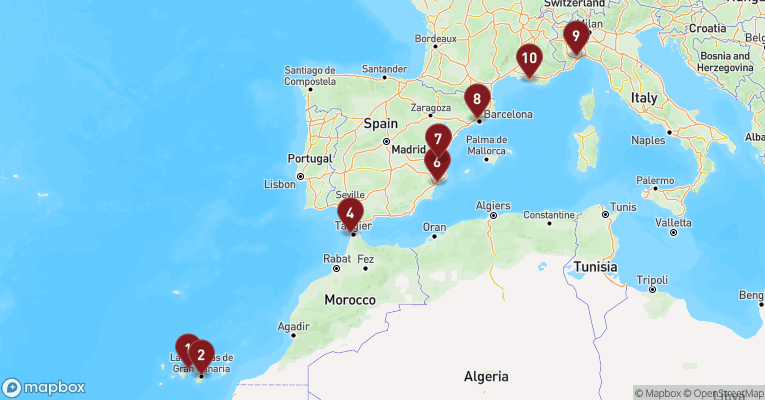 - Las Canteras Beach strækker sig langs byens kystlinje, og er en af de mest populære strande på øen med en dejlig strandpromenade.