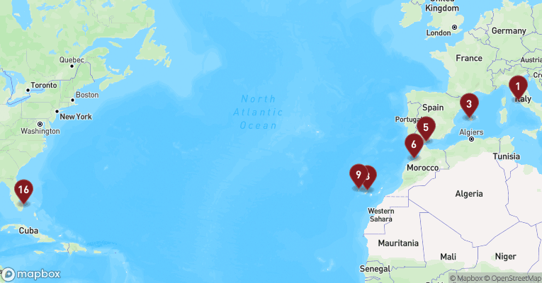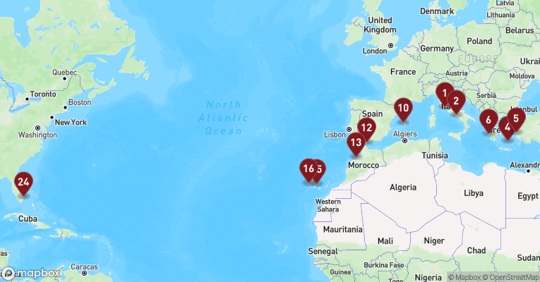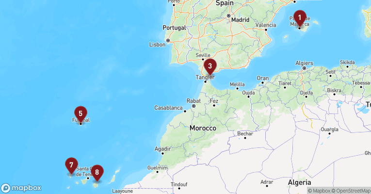 La Palma, også kendt som "Isla Bonita", er en af de mest betagende øer i De Kanariske Øer. Øen er berømt for sit imponerende vulkanske terræn, frodige skove og enestående naturskønhed. Et krydstogt til La Palma giver dig muligheden for at udforske denne smukke ø, der tiltrækker naturelskere og stjerneentusiaster fra hele verden.