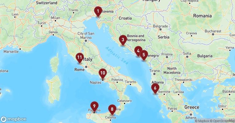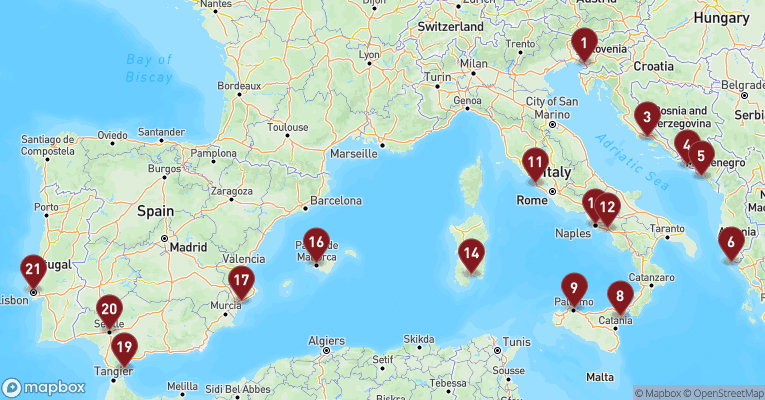 Midt på den kroatiske kyst ligger den livlige kulturby Split - en af Dalmatiens absolutte perler. Byen er Kroatiens næststørste og oser af charme. Byens hyggelige havnepromenade er fyldt med caféer, restauranter og en stor lystbådehavn. Her findes alt fra små joller til store yachts, som er en fyrste værdig. Længere ude ligger de store krydstogtsskibe - i gåafstand til centrum.