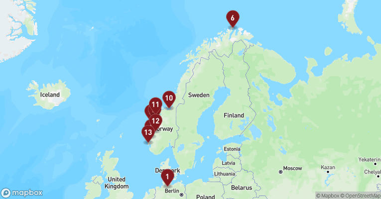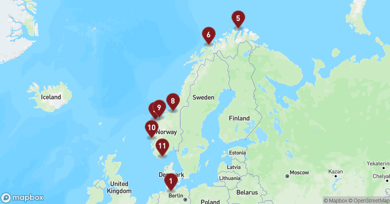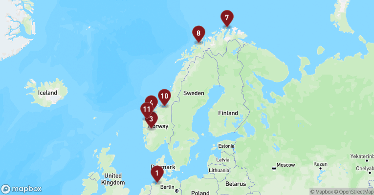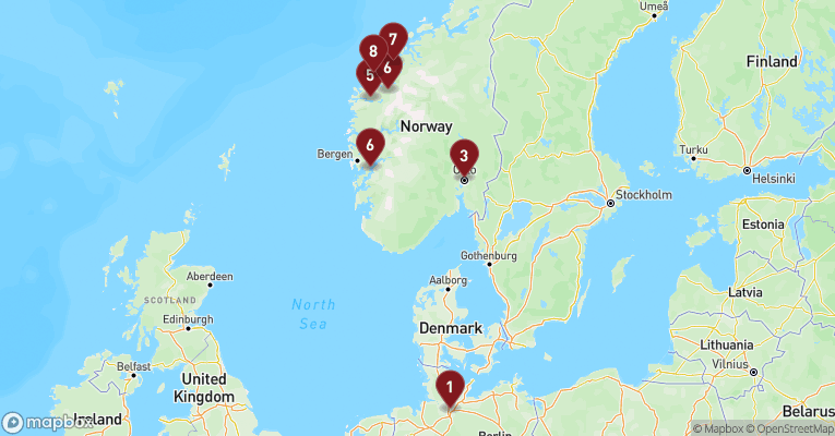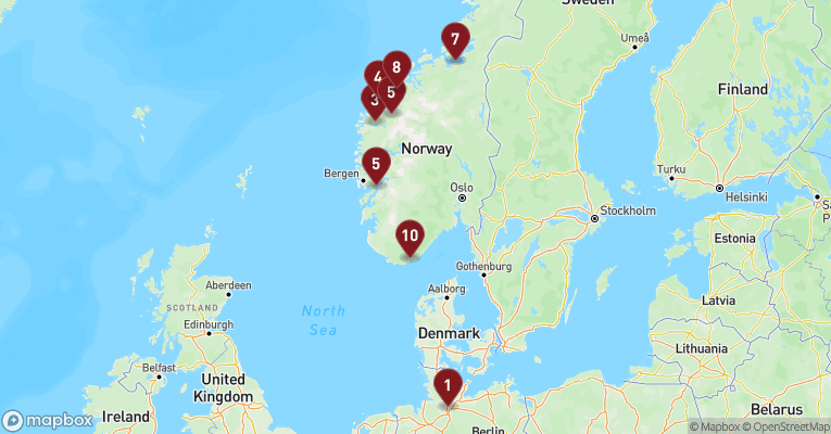 Trollstigen er en af Norges mest ikoniske og spektakulære vejstrækninger, der fører gennem Romsdal Alperne. Dette naturskabte underværk af en vej er berømt for sin dramatiske natur og for de udfordrende kørselsforhold. Trollstigen er en del af den norske turistvej, og den er kendt for sin stejle stigning og sine skarpe sving. Vejen består af 11 skarpe hårnålesving, der snor sig op gennem bjergene og når en højde på omkring 700 meter over havets overflade. På toppen af Trollstigen belønnes du med en fantastisk udsigt over dalen og Stigfossen-vandfaldet, der styrter ned fra en højde af 320 meter. Trollstigen er åben fra omkring midten af maj til slutningen af oktober, og det er i denne periode, du har mulighed for at udforske denne utrolige vej.