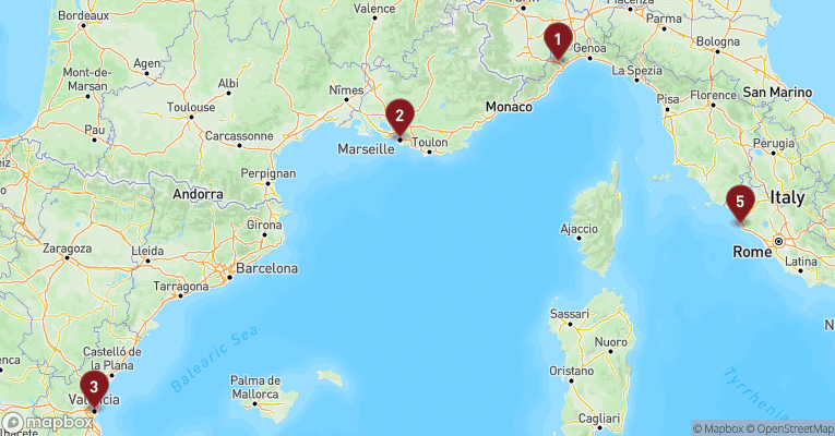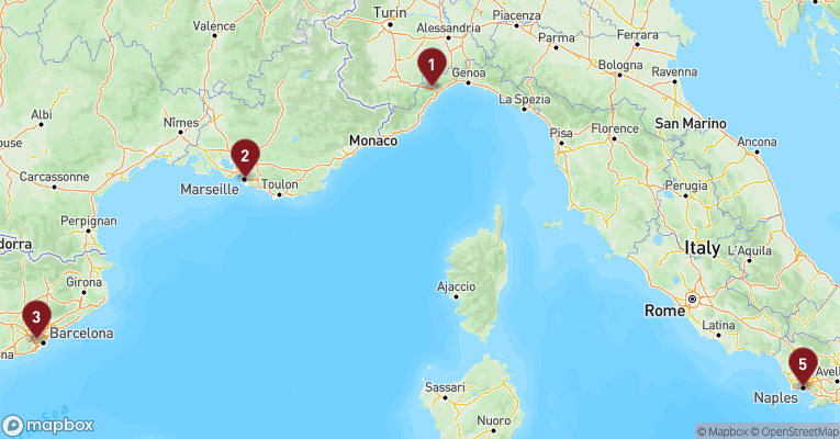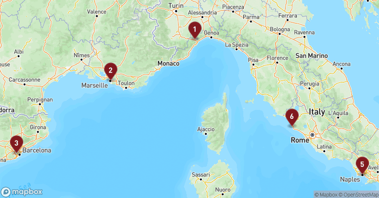 Med en strategisk beliggenhed tæt på nogle af Europas mest populære destinationer, er Savona et ideelt udgangspunkt for en uforglemmelig rejse til eksotiske steder som Barcelona, Marseille og Napoli.