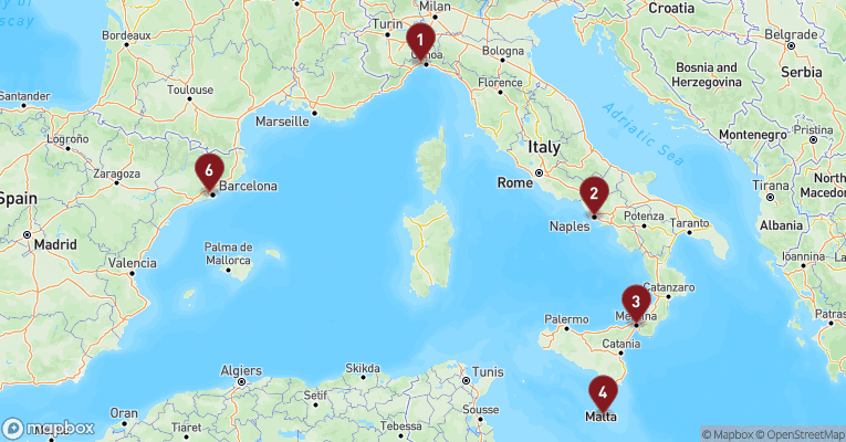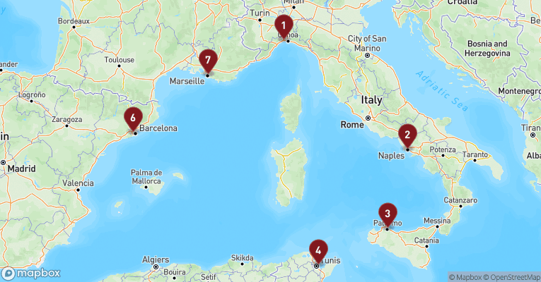 Mange krydstogtselskaber tilbyder spændende ruter fra Savona og Genova, der tager dig til nogle af Middelhavets mest eftertragtede destinationer. En klassisk rute inkluderer ofte stop i den franske havneby Marseille, hvor du kan opleve den livlige gamle havn og den berømte basilika Notre-Dame de la Garde. Herefter kan du fortsætte til Barcelona, hvor arkitektur, kultur og gastronomi smelter sammen på en unik måde.