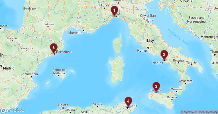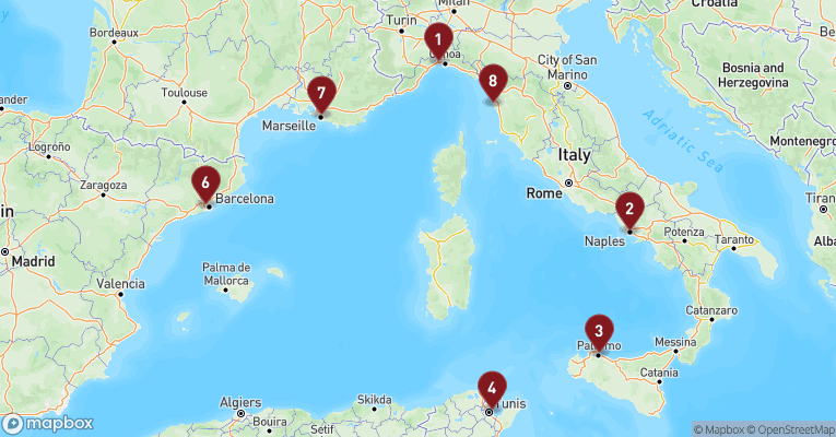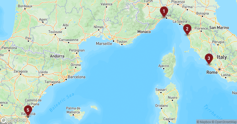 Populære ruter fra Savona og Genova