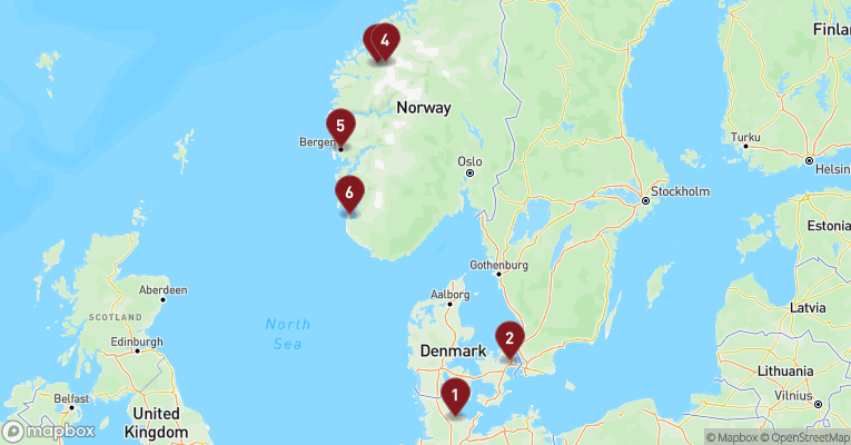 Når krydstogtet fra Kiel begynder, åbner en verden af eventyr sig. Mange ruter går mod nord, hvor de betagende norske fjorde venter. Her kan du opleve dramatiske landskaber, dybe fjorde og charmerende kystbyer som Bergen og Geiranger.