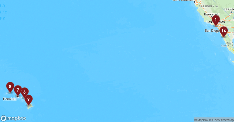 Honolulu er Hawaiis pulserende hovedstad og indgangsport til øernes frodige natur, vulkanske landskaber og rige kulturarv. Byen strækker sig mellem det turkisblå Stillehav og de grønne, takkede Koʻolau-bjerge, hvor skyskygge og palmer danner kulisse for både storbyliv og stille stunder. Ved Waikiki Beach finder du det klassiske postkortmotiv med surfere i silhuet og det udslukte vulkankrater Diamond Head som baggrund. Krateret kan du bestige ad en kort, men stejl sti, hvorved du belønnes med en storslået udsigt over kysten og byens skyline. I Honolulus historiske centrum ligger Iolani Palace, det eneste kongepalads på amerikansk jord, som vidner om dengang, Hawaii var et selvstændigt kongerige. Ikke langt derfra ligger Pearl Harbor, hvor museer og mindesmærker fortæller om det japanske angreb i 1941 og dets efterfølgende betydning for verdenshistorien. Du kan også besøge Bishop Museum, hvor Hawaiis oprindelige kultur og mytologi formidles med stor respekt og dybde. Oahu-øens varierede landskab åbner sig lige uden for byen, med vandrestier gennem regnskov, klippekyster og ananasplantager. Honolulu er mere end en ferieby – det er en levende kulturarv i tropiske omgivelser, hvor tradition og nutid væver sig sammen i både landskab og livsrytme.