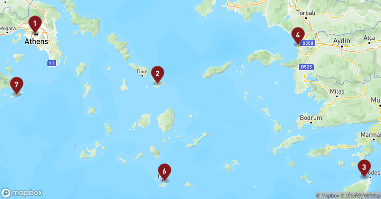 Mykonos indbyder til en gåtur gennem hovedbyens labyrintiske gyder. Her møder du masser af fotoværdige motiver i form af malede døre, små kapeller og balkoner fyldt med farverige blomster foruden de berømte vindmøller, der er øens vartegn og står som tavse vogtere over byen. De stammer fra det 16. århundrede, hvor Mykonos var et handelscentrum på ruten mellem Venedig og Asien. I det billedskønne ”Lille Venedig” står de farverige huse på pæle i vandet, mens bølgerne slår op mod terrasserne – et yderst fotogent og romantisk område med trendy barer og gallerier. Du kan også besøge det Antikke Grækenland ved at sejle til den lille naboø, Delos, der siges at være fødestedet for den græske gud Apollo og derfor var den helligste ø i Grækenland. I dag er øen et åbent museum med mange interessante arkæologiske fund.
