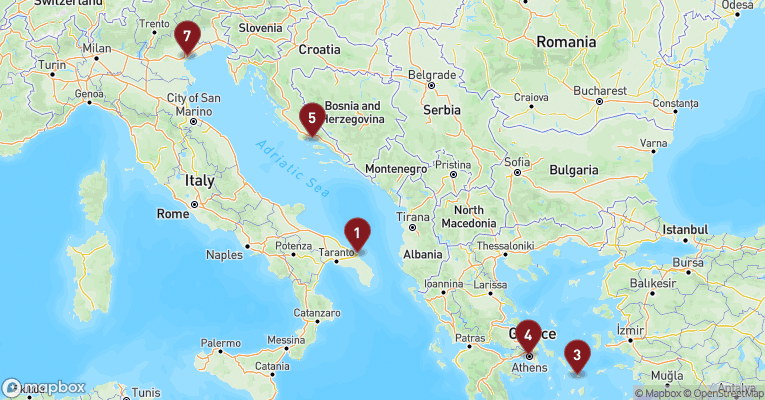 Brindisi ligger på den italienske støvlehæl. Her er masser af italiensk charme med et orientalsk pift, og du kan tilbringe nogle hyggelige timer i den gamle bydel, hvis smalle gader gemmer på flere guldkorn i form af bl.a. flotte paladsagtige bygninger fra det 17. og 18. århundrede samt den bemærkelsesværdige katedral, der har overlevet hele syv jordskælv igennem tiden. Følg i korsfarere og handelsfolks fodspor langs den gamle Via Appia, der ender ved den ikoniske romerske søjle, og slap af med en espresso i palmernes skygge på et hyggeligt torv omgivet af charmerende hvide stenhuse. Nærliggende Alberobello er kendt for sine cylindriske, eventyragtige huse, mens Lecce, der også kendes som ”Sydens Firenze”, har et imponerende amfiteater.