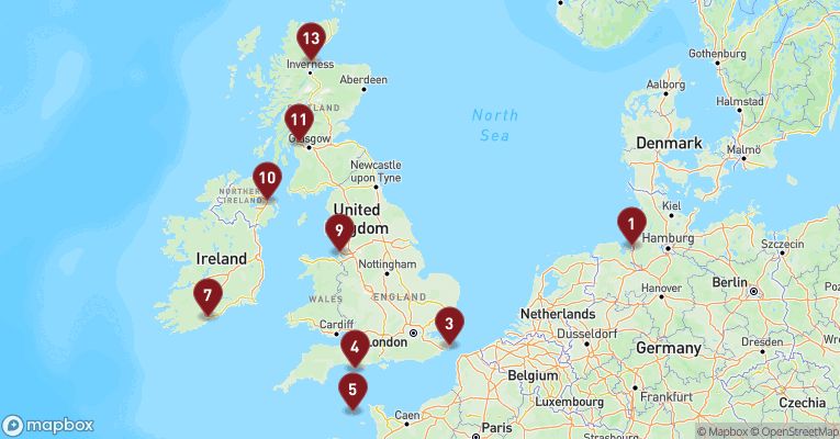 Alt efter hvornår på året man er ombord på skibet, sejler det i henholdsvis Nordeuropa, Baltikum, Middelhavet, Madeira og Kanaireøerne.