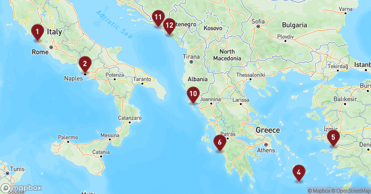 Katakolon er en lille, solbeskinnet havneby på den græske vestkyst, hvor blå skodder og duftende citrus træder frem mod hvidkalkede mure. Her emmer det af middelhavsstemning, men byen er især kendt som porten til oldtidens Olympia – det sagnomspundne sted, hvor de olympiske lege blev født for næsten 3.000 år siden. På en dagsudflugt kan du vandre i skyggen af oliventræer blandt templer, søjler og stadionanlæg, hvor atleter engang kæmpede for gudernes gunst. Museet i Olympia rummer fine skulpturer og fund, der bringer antikkens verden helt tæt på. Tilbage i Katakolon venter små butikker med lokale specialiteter, håndlavede smykker og flasker med den kraftige, sødlige vin fra nærliggende vingårde. Du kan nyde friskfanget blæksprutte og grillet fisk på en taverna med udsigt over det turkisblå hav eller gå en tur langs molen, hvor fiskerne reparerer deres net i solen. Har du lyst til at udforske mere, ligger sandstrandene blot få minutter væk, og bag dem strækker det græske landskab sig ud med vinmarker, pinjetræer og varme vinde.