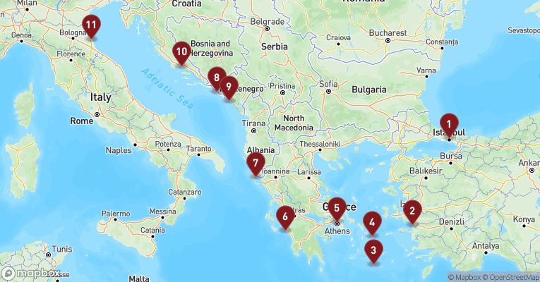 Istanbul ligger, hvor to kontinenter mødes, og bærer sin historie som et lagdelt tæppe af kejserriger, tro og kultur. Her smelter Øst og Vest sammen i en by, der på én gang føles tidløs og fuld af liv. Minareter og kirketårne rager op over tagene, og både færger og moderne sporvogne krydser Bosporusstrædet, hvor Europa og Asien kun adskilles af få minutters sejlads. Et besøg i Hagia Sophia, der først var en kirke, siden blev til en moské, så et museum og nu atter en moské, giver et glimt af byens komplekse sjæl. Indenfor mødes kristne mosaikker og islamisk kalligrafi i et rum, hvor lyset filtreres blødt gennem kupler og hvælvinger. Ikke langt derfra rejser Den Blå Moské sig med sine seks slanke minareter og blågrønne fliseværk. Du kan gå på opdagelse i den overdækkede basar med labyrintiske gange af tæpper, smykker og håndmalet keramik eller søge ro i det smukke Topkapi-palads, hvor sultanerne i århundreder regerede over et imperium. I det moderne Istanbul leves livet langs promenader og tagterrasser, hvor byens konturer spejler sig i Marmarahavet. Og selv i denne storby, der aldrig står stille, kan du finde stille lommer, hvor teen serveres i buede glas, og tiden synes at bøje sig i respekt for alt det, der kom før.