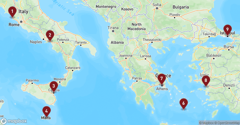 I sig selv er Civitavecchia en ganske hyggelig by at tilbringe en dag i. Fort Michelangelo er byens symbol og bestemt et besøg værd sammen med de interessante romerske ruiner af Tauriner-badene. Eller bare fortab dig selv i den atmosfærefyldte gamle bydel med godt tiltrådte brosten, grønne vejrbidte skodder og fyldte tørresnore. Ønsker du den helt store sightseeing-dag, skal du begive dig til Rom, der ligger ca. 70 km fra Civitavecchia. Rom er fyldt med ikoner fra Antikken og den kristne tro – seværdigheder der er så ”store”, at de er obligatoriske for enhver med bare en lillebitte globetrotter i maven. Rend op og ned ad Den Spanske Trappe og kast en mønt i Trevi-fontænen, så du – i hvert fald ifølge sagnet – er sikker på at vende tilbage til Den Evige Stad. Besøg det bedst bevarede monument fra Romertiden, Pantheon, som vil betage dig med sin enorme kuppel, der lader til at svæve hen over bygningen uden synlige støttepiller, og nyd en italiensk gelato, mens du kigger på menneskemylderet og de fabelagtige springvand på Piazza Navona, hvis ovale form skyldes, at pladsen engang var et stadion. Og sådan kunne vi blive ved og ved…