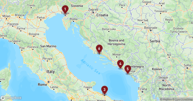 Trieste er en af Italiens mest oversete byperler – en elegant blanding af italiensk charme, østrigsk-arvet storhed og centraleuropæisk melankoli. Byen breder sig ud langs Adriaterhavets kyst med sin smukke havnefront og pastelfarvede palæer, og bag den rejser de skovklædte bjerge sig som en grøn kulisse. En dag i Trieste kan føre dig gennem Piazza Unità d’Italia – en af Europas største og smukkeste pladser ud til havet – omgivet af storslåede bygninger, der vidner om Habsburgertiden. Du kan udforske den gamle bydel med snævre gyder og hyggelige caféer, hvor der serveres stærk espresso med udsigt til smalle kirkespir og støvede boghandlere. Lidt uden for centrum troner det eventyrlige Castello di Miramare, et hvidt marmorslot på en klippe med udsigt over havet, omgivet af romantiske stier og eksotiske haver. Du kan også besøge den historiske synagoge, den imponerende San Giusto-katedral eller tage en tur med den stejle sporvogn op til landsbyen Opicina, hvorfra du får det bedste overblik over byen og kystlinjen.