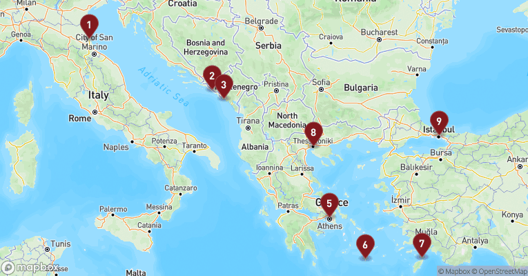 Kotor er en lille perle af en by placeret mellem bjerge i bunden af en naturskøn bugt, og dens gamle del er en middelalderlig labyrint af snoede, brostensbelagte gader med museer, kirker og små pladser med hyggelige caféer. Den imponerende Sankt Tryphon katedral og dens udsmykkede facade er et must, ligesom San Giovanni fæstningen er værd at besøge til trods for de 1.350 trin, der skal forceres. Du belønnes nemlig med en spektakulær panoramaudsigt over bugten og byens røde tage samt flere pittoreske udsigter på vejen op og ned. Midt i bugten ligger Our Lady of the Rocks – en lille ø med en smuk kirke – og emmer af historie og myter, og den er også den nødvendige lille bådtur værd.