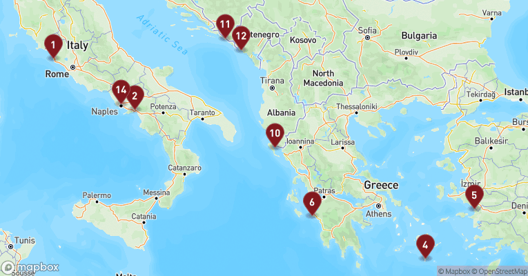 Katakolon er en lille, solbeskinnet havneby på den græske vestkyst, hvor blå skodder og duftende citrus træder frem mod hvidkalkede mure. Her emmer det af middelhavsstemning, men byen er især kendt som porten til oldtidens Olympia – det sagnomspundne sted, hvor de olympiske lege blev født for næsten 3.000 år siden. På en dagsudflugt kan du vandre i skyggen af oliventræer blandt templer, søjler og stadionanlæg, hvor atleter engang kæmpede for gudernes gunst. Museet i Olympia rummer fine skulpturer og fund, der bringer antikkens verden helt tæt på. Tilbage i Katakolon venter små butikker med lokale specialiteter, håndlavede smykker og flasker med den kraftige, sødlige vin fra nærliggende vingårde. Du kan nyde friskfanget blæksprutte og grillet fisk på en taverna med udsigt over det turkisblå hav eller gå en tur langs molen, hvor fiskerne reparerer deres net i solen. Har du lyst til at udforske mere, ligger sandstrandene blot få minutter væk, og bag dem strækker det græske landskab sig ud med vinmarker, pinjetræer og varme vinde.