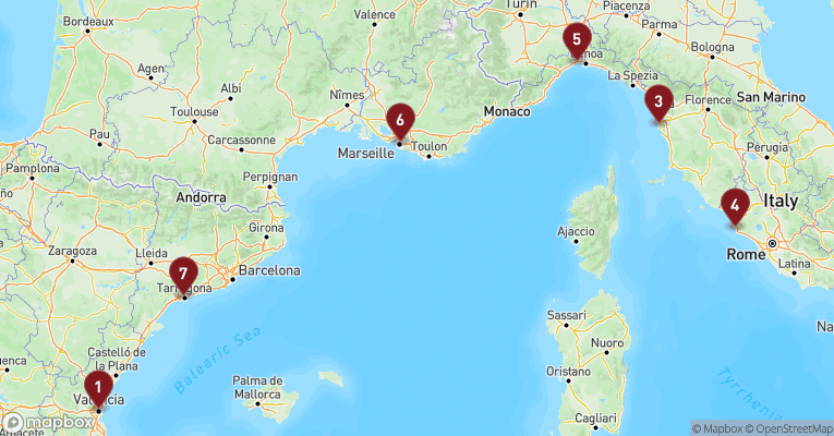 I Tarragona falder Middelhavets lys på ruiner fra Romerriget og giver historien en nærmest fysisk tilstedeværelse. Midt i byen ligger resterne af amfiteatret, hvor gladiatorer engang kæmpede med havet som bagtæppe, og tæt ved står den store akvædukt Pont del Diable, der stadig spænder sin bue over dalen med imponerende præcision. I den middelalderlige bydel snor smalle gader sig mellem bagerduft og kaffe, og små pladser folder sig ud med springvand og caféborde i skyggen. Katedralens gotiske facade rejser sig over byens tage, og bag murene gemmer klostergården på århundreders håndværk i sine fint udskårne kapitæler. Nede ved havnen summer strandpromenaden af liv, og Platja del Miracle - Mirakelstranden -ligger kun få skridt fra de gamle ruiner. Lidt længere nede ad kysten finder du den gamle fiskerbydel El Serrallo, hvor dagens fangst stadig landes og serveres på små, enkle restauranter som et levende minde om Tarragonas maritime rødder.