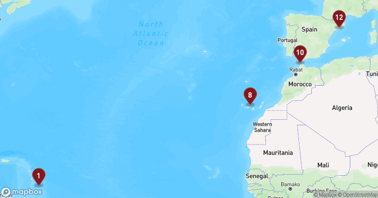 Castries er hovedstaden på St. Lucia og en farverig blanding af caribisk livsglæde, kolonihistorie og tropisk natur. Gaderne dufter af krydderier, frugt og hav, og de små markedsboder bugner af håndlavet kunsthåndværk og modne mangoer. Byens placering i en bugt med grønne bjerge i baggrunden gør den til et smukt udgangspunkt for udflugter ind i øens frodige indre. En dag her kan tage dig til det berømte udsigtspunkt Morne Fortune, hvor du får panorama over byen og havnen, og videre sydpå til Soufrière-regionen med dens boblende svovlkilder og St. Lucias stolte vartegn – de to grønklædte tvillingebjerge Pitons, der rejser sig dramatisk op af det azurblå hav. Du kan bade i varme mineralbade, besøge en kakaoplantage eller sejle langs vestkysten, hvor fiskerlandsbyer, palmefyldte strande og koralrev afløser hinanden. Øens vulkanske oprindelse mærkes overalt – i jorden, i landskabet og i de sorte sandstrande. Og midt i det hele venter den varme, rytmiske puls fra en befolkning, der møder dig med smil, stolthed og et "Welcome to paradise", der føles helt ægte.
