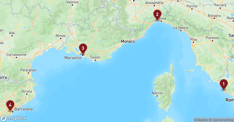 Christopher Columbus’ fødeby, Genova, er en klassisk italiensk by beliggende midt i bølgende bakker med pastelfarvede huse med terrakotta-tag, fantastiske kirker, hængende haver, barokke paladser og smuldrende romerske ruiner. Byens historiske centrum er Europas største, og de smalle, snoede gader er spækket med vidunderlig arkitektur og kunstneriske skatte. Charmerende butikker tilbyder spændende shoppingmuligheder, mens caféer og restauranter lokker med lokale, smagfulde retter. Ved foden af byens centrum ligger den historiske havn, der efter nytænkende renoveringer fremstår som et trendy mødested med en travl marina og barer ved vandet samt et maritimt museum og et fascinerende akvarium, der er det største i Europa. Adelens gamle paladser, hvis antal og pragt ikke findes andre steder i Italien, er blandt Genovas vigtigste turistattraktioner, ligesom den sort-hvide katedral, den skulpturfyldte Staglieno-kirkegård og tårnene ved Porta Soprana er værd at kigge nærmere på.