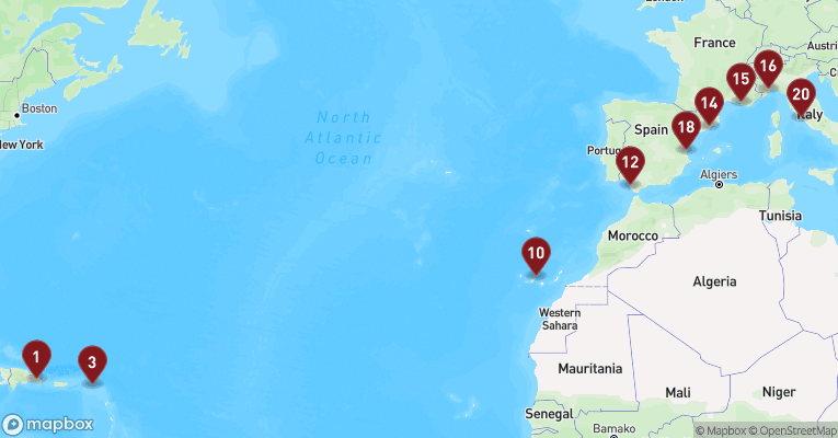 Farvestrålende huse i kolonistil, glitrende butikker og turkisblåt hav danner rammen om Philipsburg, hovedbyen på den hollandske del af St. Maarten. Den kompakte by ligger som en perle mellem to bugter og er let at udforske til fods. Langs strandpromenaden, Boardwalk, venter bløde sandstrande, palmer og caféer, mens Front Street bagved byder på caribisk stemning og toldfri shopping i alt fra smykker til parfume og elektronik. Vil du dykke dybere ned i øens historie, kan du besøge Fort Amsterdam, der blev opført af hollænderne i 1600-tallet og stadig vogter over bugten med kanoner og udsigt. Længere inde i landet lokker de grønklædte bakker og små landsbyer, og på en udflugt kan du opleve både den franske og hollandske del af øen på én dag. Et højdepunkt for mange er et besøg ved Maho Beach, hvor fly fra hele verden lander blot få meter over hovedet på badegæster - en oplevelse, der er lige dele adrenalinsus og turistmagi. Øen rummer også rolige laguner, kreolske fiskeretter og små kunstgallerier, og trods sin beskedne størrelse føles St. Maarten som en hel lille verden - med kontraster, charme og caribisk lethed.