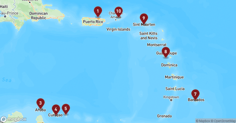 Farvestrålende huse i kolonistil, glitrende butikker og turkisblåt hav danner rammen om Philipsburg, hovedbyen på den hollandske del af St. Maarten. Den kompakte by ligger som en perle mellem to bugter og er let at udforske til fods. Langs strandpromenaden, Boardwalk, venter bløde sandstrande, palmer og caféer, mens Front Street bagved byder på caribisk stemning og toldfri shopping i alt fra smykker til parfume og elektronik. Vil du dykke dybere ned i øens historie, kan du besøge Fort Amsterdam, der blev opført af hollænderne i 1600-tallet og stadig vogter over bugten med kanoner og udsigt. Længere inde i landet lokker de grønklædte bakker og små landsbyer, og på en udflugt kan du opleve både den franske og hollandske del af øen på én dag. Et højdepunkt for mange er et besøg ved Maho Beach, hvor fly fra hele verden lander blot få meter over hovedet på badegæster - en oplevelse, der er lige dele adrenalinsus og turistmagi. Øen rummer også rolige laguner, kreolske fiskeretter og små kunstgallerier, og trods sin beskedne størrelse føles St. Maarten som en hel lille verden - med kontraster, charme og caribisk lethed.
