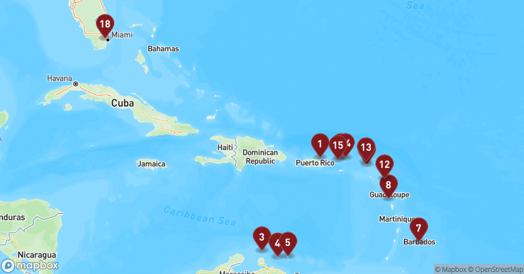 Farverige huse med smedejernsbalkoner, brostensbelagte gader og bymure dækket af klatreplanter - San Juans gamle bydel emmer af kolonitid og caribisk charme. Her kan du gå en tur langs Paseo del Morro og se ud over Atlanterhavet, mens du nærmer dig det mægtige fæstningsværk Castillo San Felipe del Morro, der blev bygget af spanierne i 1500-tallet for at beskytte øen mod pirater. Bag de tykke mure gemmer sig kanoner, udkigstårne og en svimlende udsigt over kysten. Inde i byen lokker små gallerier, caféer og livlige pladser med gadekunst og musik, og i baggrunden står den gamle San Juan-katedral, hvor den spanske opdagelsesrejsende Juan Ponce de León ligger begravet. Vil du lidt uden for byens mure, kan du tage på en kort køretur til regnskoven El Yunque, hvor smalle stier fører dig gennem tågeskov, forbi vandfald og lianer, mens papegøjer og små frøer spiller op fra trækronerne. Eller du kan kaste dig i bølgerne ved Condado-stranden og mærke den varme brise, som kun Puerto Rico kan levere.