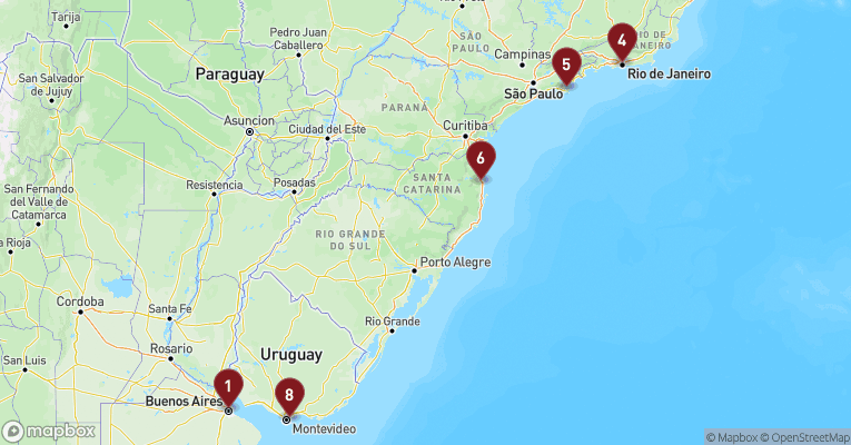 Rio de Janeiro er verdenskendt for sine ikoniske strande som Copacabana og Ipanema, men bag det livlige strandliv gemmer der sig en by med dramatiske landskaber og dyb kulturarv. Byens placering mellem grønklædte bjerge og Atlanterhavets dybblå bølger gør den til et af verdens mest betagende urbane panoramaer. Du kan tage svævebanen til toppen af Sukkertoppen og nyde udsigten over bugten, eller besøge Kristusfiguren på Corcovado, der våger over byen med åbne arme. I byens centrum venter det farverige kvarter Lapa med sine historiske akvædukter, brostensbelagte gader og livlige stemning, mens Santa Teresa byder på kolonitidsvillaer, gadekunst og små gallerier. I Tijuca-nationalparken – verdens største urbane regnskov – kan du opleve tropisk fugleliv, brusende vandfald og tætte bregneskove, blot få minutter fra storbyens puls. Du kan også besøge Maracanã, det legendariske fodboldstadion, eller nyde en frisk kokosnød i skyggen af palmerne langs strandpromenaden. Overalt høres rytmerne af samba og bossa nova, og du mærker hurtigt, at Rio ikke kun er en destination – det er en stemning, en farverig energi, hvor natur, kultur og livsglæde smelter sammen i ét uforglemmeligt øjeblik.