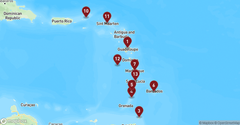 Farverige træhuse med udskårne verandaer, afskallede facader og bliktag i rødt og turkis sætter kulør på St. John’s, Antiguas lille, livlige hovedby. Byens centrum er overskueligt og levende, og her finder du både kolonihistoriske bygninger og små lokale museer, som giver et indblik i øens britiske arv og afrocaribiske kultur. I havnen ligger farverige fiskerbåde side om side med store krydstogtskibe, og fra den lille promenade er der udsigt over Det Caribiske Havs klare blå nuancer. Ikke langt fra byen ligger nogle af Antiguas største seværdigheder: Nelson’s Dockyard i English Harbour er en velbevaret flådebase fra 1700-tallet, hvor du kan gå mellem gamle stenhuse og mastekraner og få et glimt af livet under Royal Navy. Området er på UNESCO's verdensarvsliste og oser af maritim historie. Kører du videre op ad bjergvejene, når du til Shirley Heights, der er en tidligere udkigspost med storslået udsigt over bugten og havet. Øen er kendt for sine mange strande - faktisk én for hver dag i året, som man siger - og du finder alt fra stille laguner til strækninger med bølger og liv. Antigua er rig på historie, men det er også en ø, hvor rytmen er afslappet, og naturen altid lige om hjørnet.