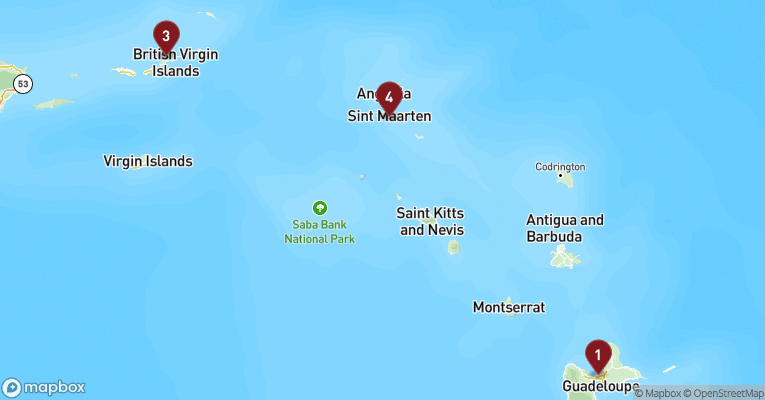 Tortola er den største af de 4 øer, der udgør De Britiske Jomfruøer. Hovedbyen hedder Road Town og emmer af caribisk stemning med farverige huse, palmeskygger og en afslappet rytme, der smitter fra første skridt. Byen ligger som en vifte ud mod en azurblå bugt, hvor katamaraner og sejlbåde vugger i takt med brisen. Herfra er det oplagt at udforske øens grønne indre og kystens mange perler. En tur op ad de snoede bjergveje fører dig til Sage Mountain National Park, hvor fugtige regnskovsdufte, orkidéer og udsigtspunkter over Det Caribiske Hav venter. Langs kysten finder du strande som smukke Cane Garden Bay og mere afsides Brewers Bay, hvor havskildpadder ofte ses blandt korallerne. Lokalt håndværk og rom med historiske rødder kan opleves i små butikker og på Callwood Distillery, et af de ældste fungerende romdestillerier i Caribien. Tortola har også en levende historie, og på The Virgin Islands Folk Museum i Road Town får du indblik i kolonitid, pirateri og plantagedrift. Det er netop kontrasten mellem den vilde natur, de stille bugter og det livlige bycentrum, der gør Tortola så dragende – og gør en dag her til mere end blot et stop i solen.