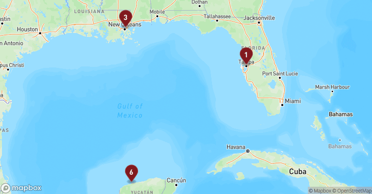 Tampa har rødder i både cubansk, spansk og italiensk indvandring, og det mærkes især i Ybor City - et kvarter opstået omkring cigarindustrien i slutningen af 1800-tallet. Her ligger murstensbygninger med gamle skilte og balkoner, hvor du kan besøge små cigarværksteder, caféer og barer, der holder fast i områdets særpræg. I centrum af byen finder du et moderne skyline med museer langs floden såsom Tampa Museum of Art og Florida Aquarium, hvor livet under havoverfladen udfolder sig i kæmpe tanke. Havneområdet Riverwalk giver en afslappet promenade langs Hillsborough River, forbundet af broer og med udsigt til både kajakker og lystyachter. Lidt udenfor centrum ligger Busch Gardens - en blanding af forlystelsespark og zoologisk have - der giver et vildt indblik i Afrikas dyreliv side om side med rutsjebaner. Tampa er en by med kontraster: moderne storby, immigrantkvarter med sjæl og nem adgang til Floridas solfyldte kyster.