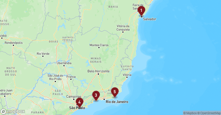 Salvador de Bahia er en af Brasiliens største byer. Her smelter flere kulturer sammen og sætter sine aftryk på maden, musikken og dansen. Byen er kendt for sin særlige koloni-arkitektur og pastelfarvede bygninger, og du vil føle dig hensat til det 17. århundrede, når du bevæger jer rundt i det bakkede og brostensbelagte historiske Pelourinho distrikt, der er optaget på UNESCO’s verdensarvsliste og betegnes som Salvadors bankende hjerte. Der findes mere end 300 kirker i Salvador. Blandt de mest overdådige og uforglemmelige er São Francisco kirke og kloster med udsmykkede lysekroner, udskæringer i bladguld og fantastiske loft-til gulv freskoer af autentiske portugisiske fliser. Du finder også en af verdens ældste elevatorer i Salvador i form af Elevador Lacerda, der er en del af en eminent Art Deco konstruktion og transporterer dig 60 m op i luften, så du kan nyde udsigten over byen.